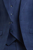 Nouvefy Collection: 3 Piece Plaid Hybrid Fit Suit In Blue For Men