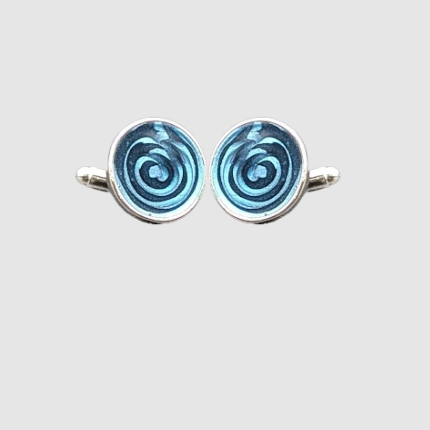 Ocean Whirlpool Glass Cufflinks Silver & Deep Blue