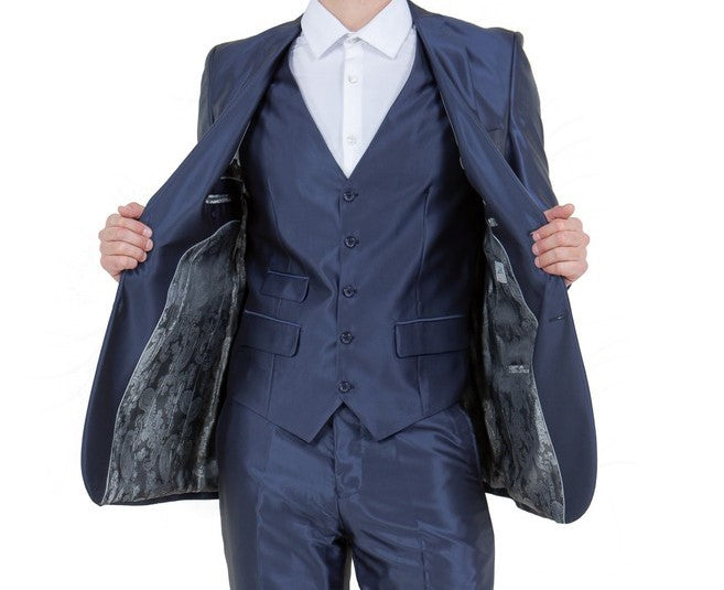 Odyssey Collection: Three-Piece Slim Fit Sharkskin Solid Suit in Navy