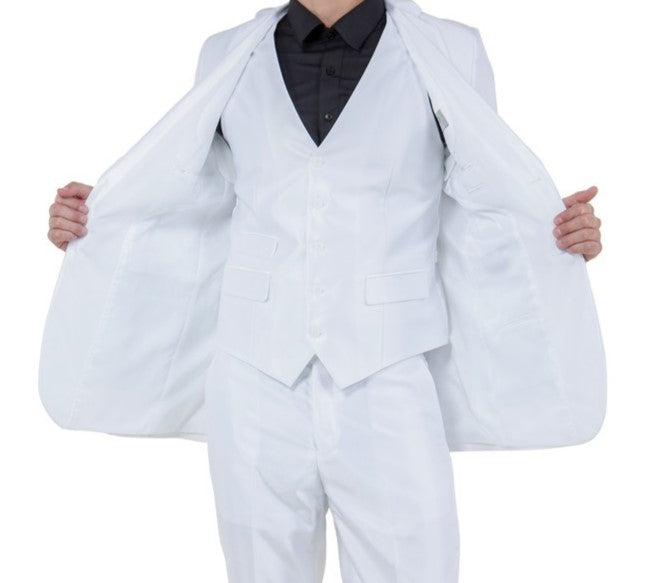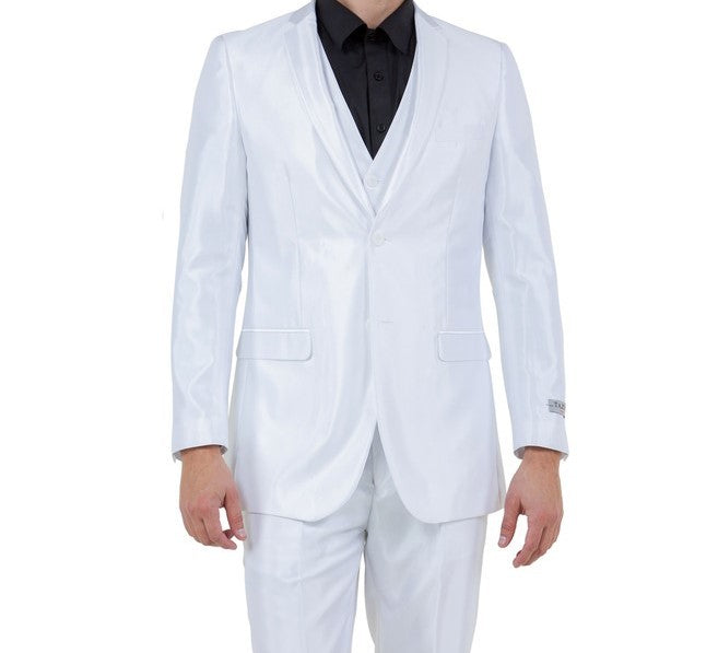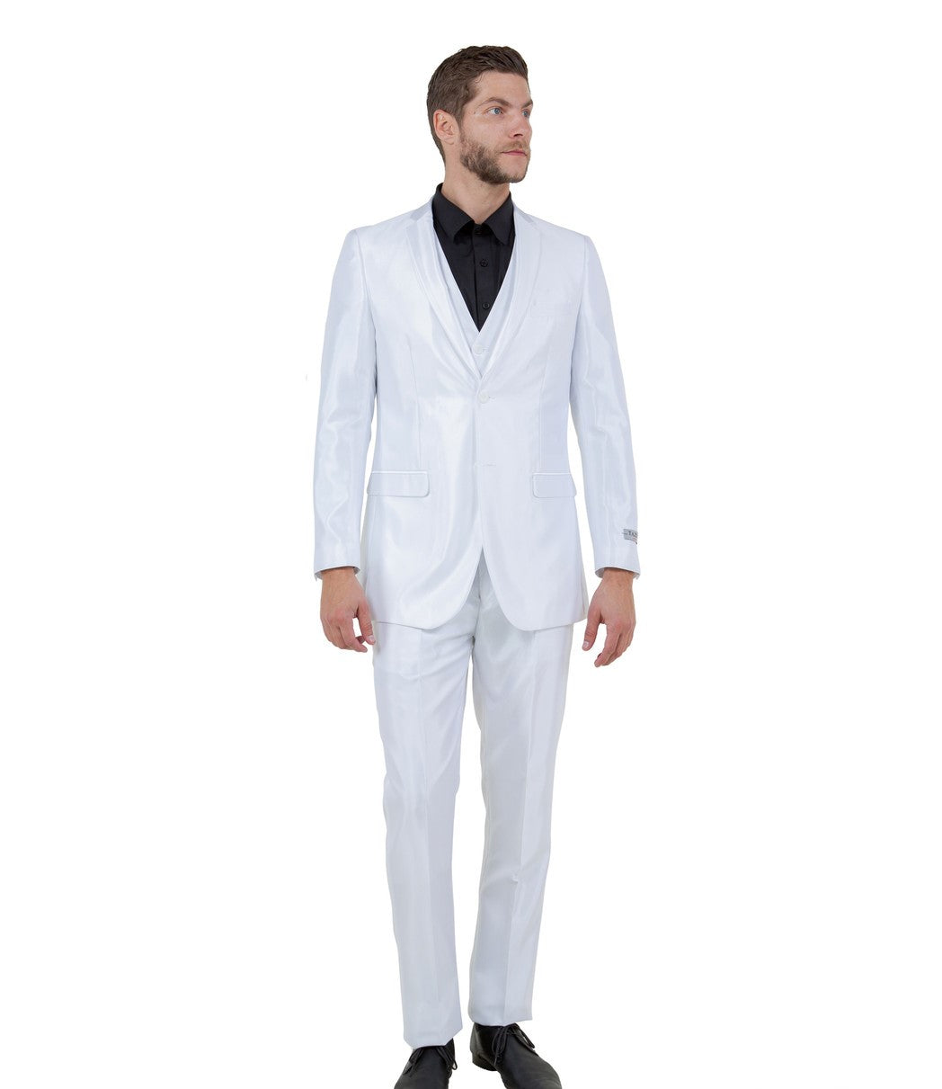 Odyssey Collection: Three-Piece Slim Fit Sharkskin Solid Suit in White