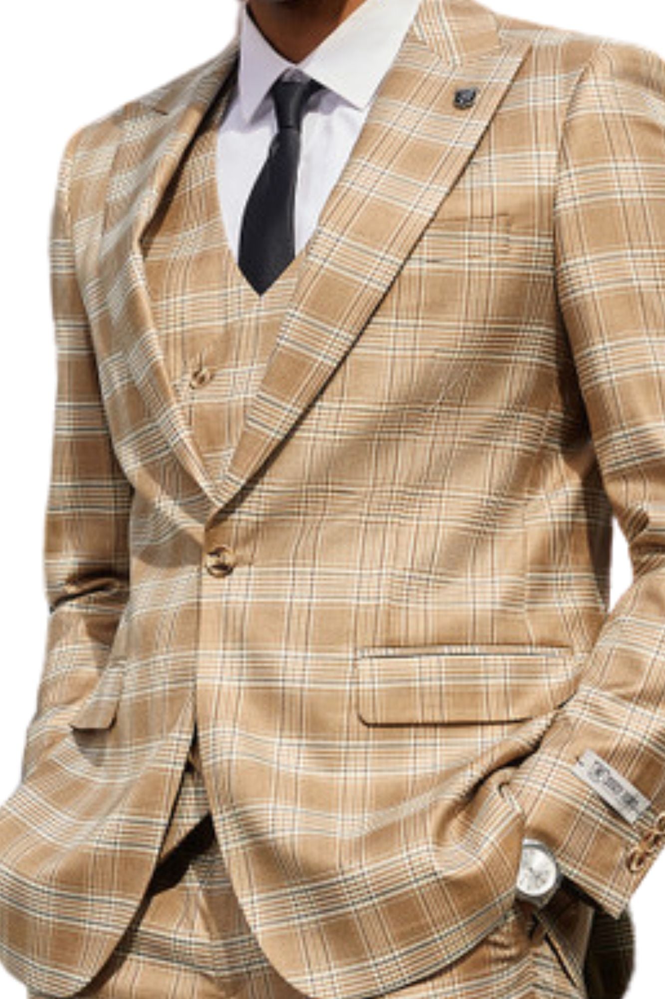 - Double-Breasted Glen Plaid Vest: A sartorial statement piece, this vest enhances the suit's layered look while maintaining a cohesive aesthetic.
