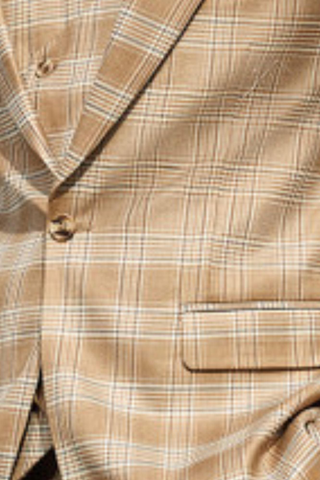 - Elegant Copper Glen Plaid: The suit's captivating copper hue interwoven with classic Glen Plaid offers a unique and sophisticated color palette.