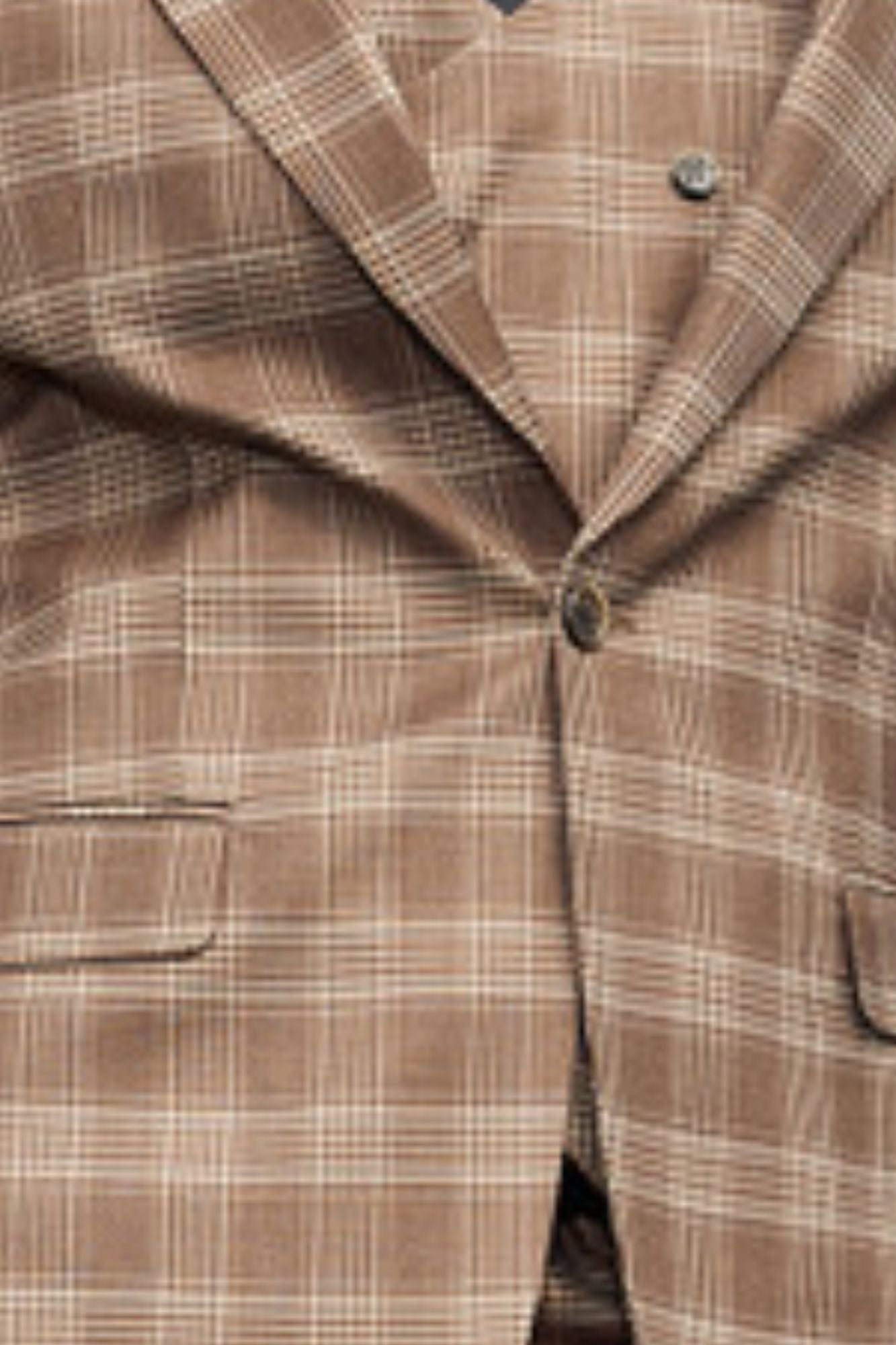 - Elegant Mid Brown Glen Plaid: The suit's captivating Mid Brown hue interwoven with classic Glen Plaid offers a unique and sophisticated color palette.