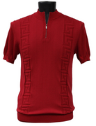 Men's Red Short Sleeve Sweater Shirt with Monogram Fabric Design Q126