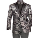 Orionis Collection: Silver Paisley Embossed Satin Peak Lapel Velvet Blazer – Modern Fit