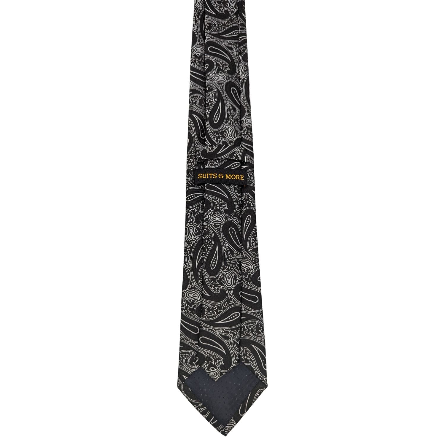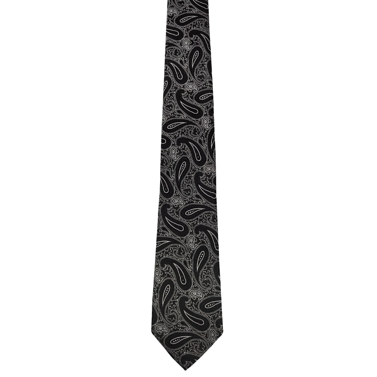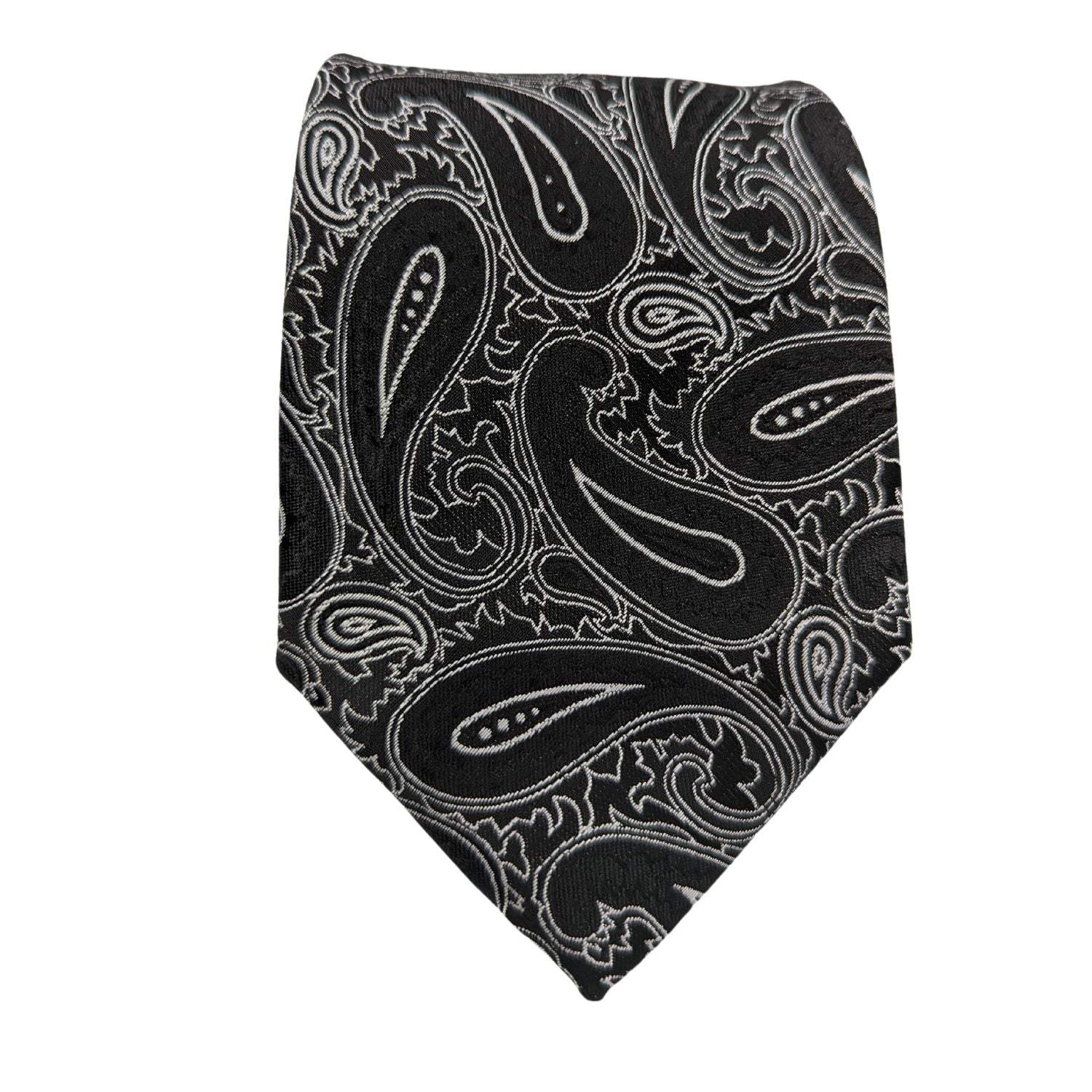 Paisley Prestige Collection: Black and Silver Paisley Design Necktie