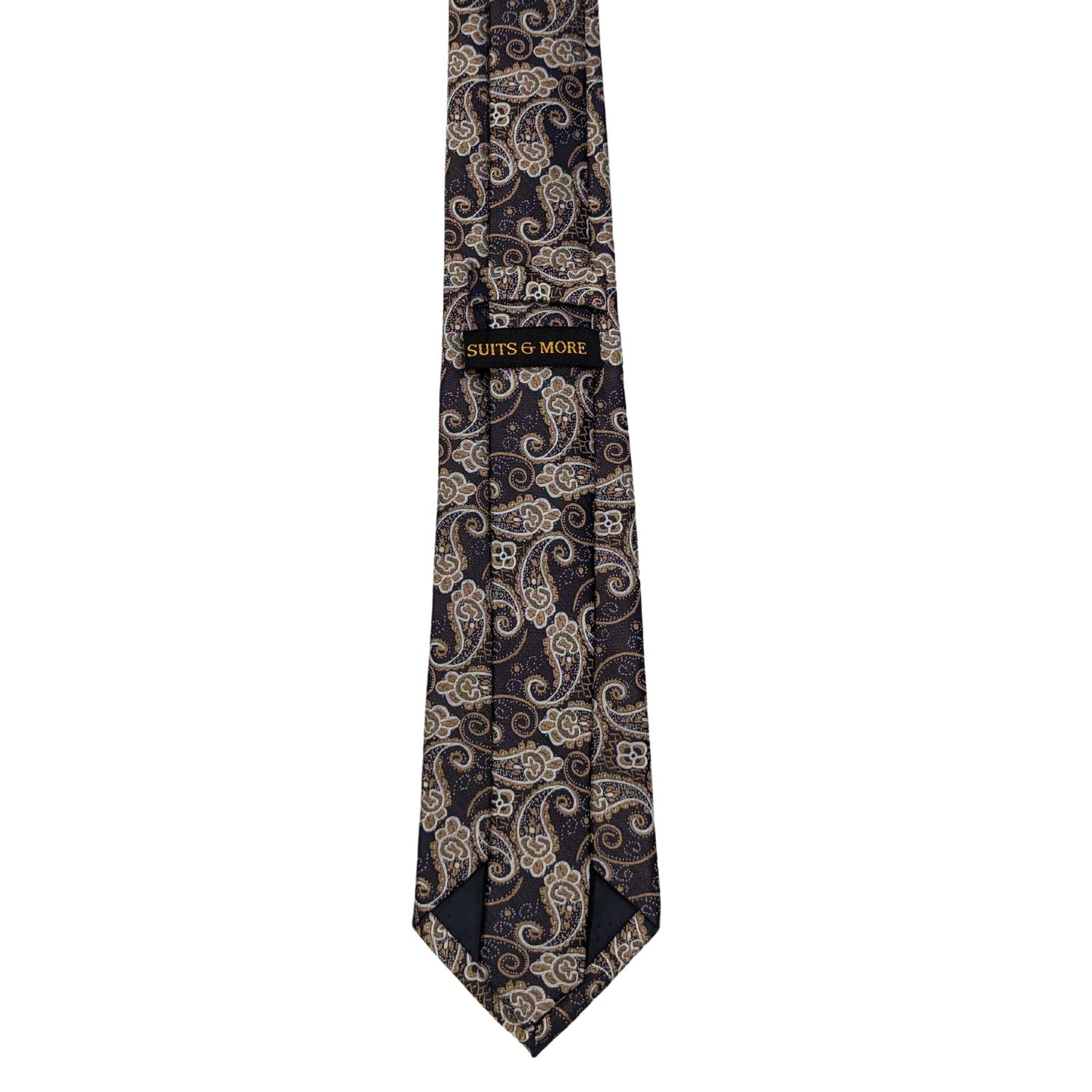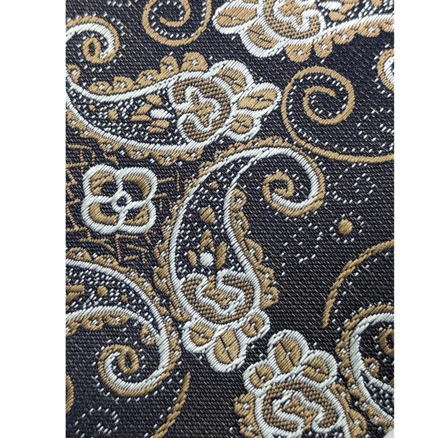 Introducing the Paisley Prestige Collection Brown Paisley Tie, a sartorial masterpiece designed for the modern gentleman. This tie, crafted with 1200 needle refined polyester, offers a luxurious feel and superior durability. The intricate gold paisley pattern is not just a style statement but a testament to timeless elegance. Perfect for any occasion, from boardroom meetings to wedding receptions, this tie ensures you carry a piece of classic sophistication wherever you go.