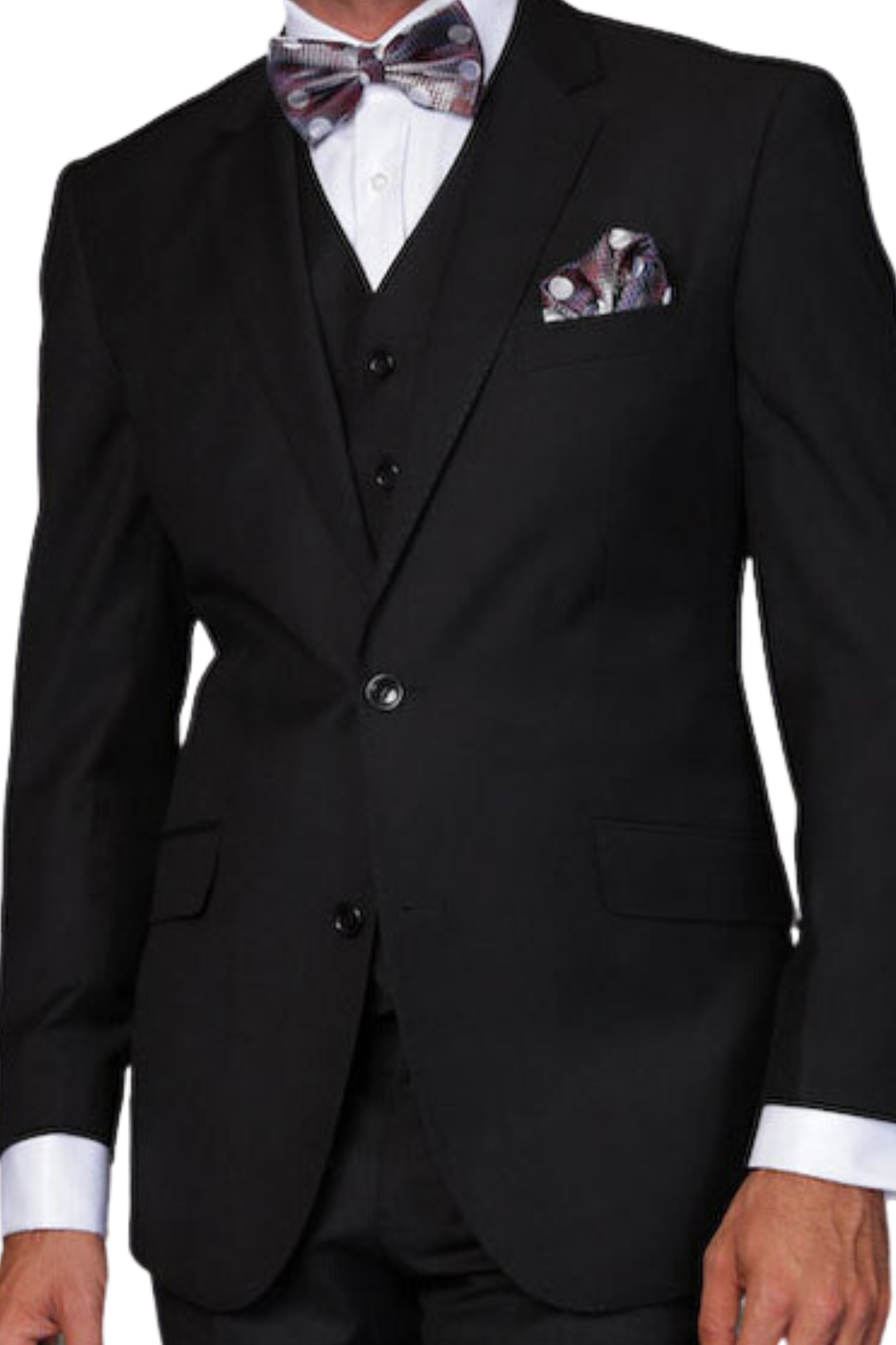 Meet your new go-to for all of life's special moments—our Pan Prestige Collection 3PC Black Solid Suit. Crafted with Super 150's Italian Wool, this ensemble is the epitome of sophistication and comfort combined. With its modern fit and flat-front pants, you'll not only look sharp but also stay incredibly comfy from dawn to dusk.