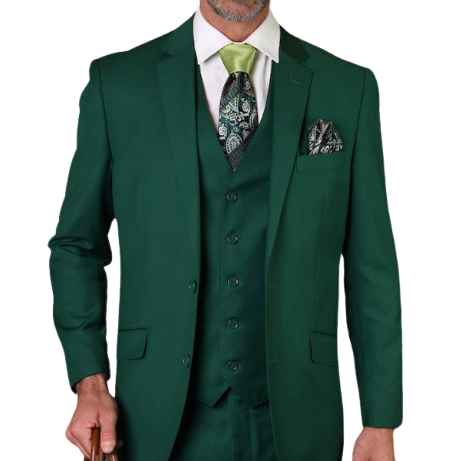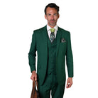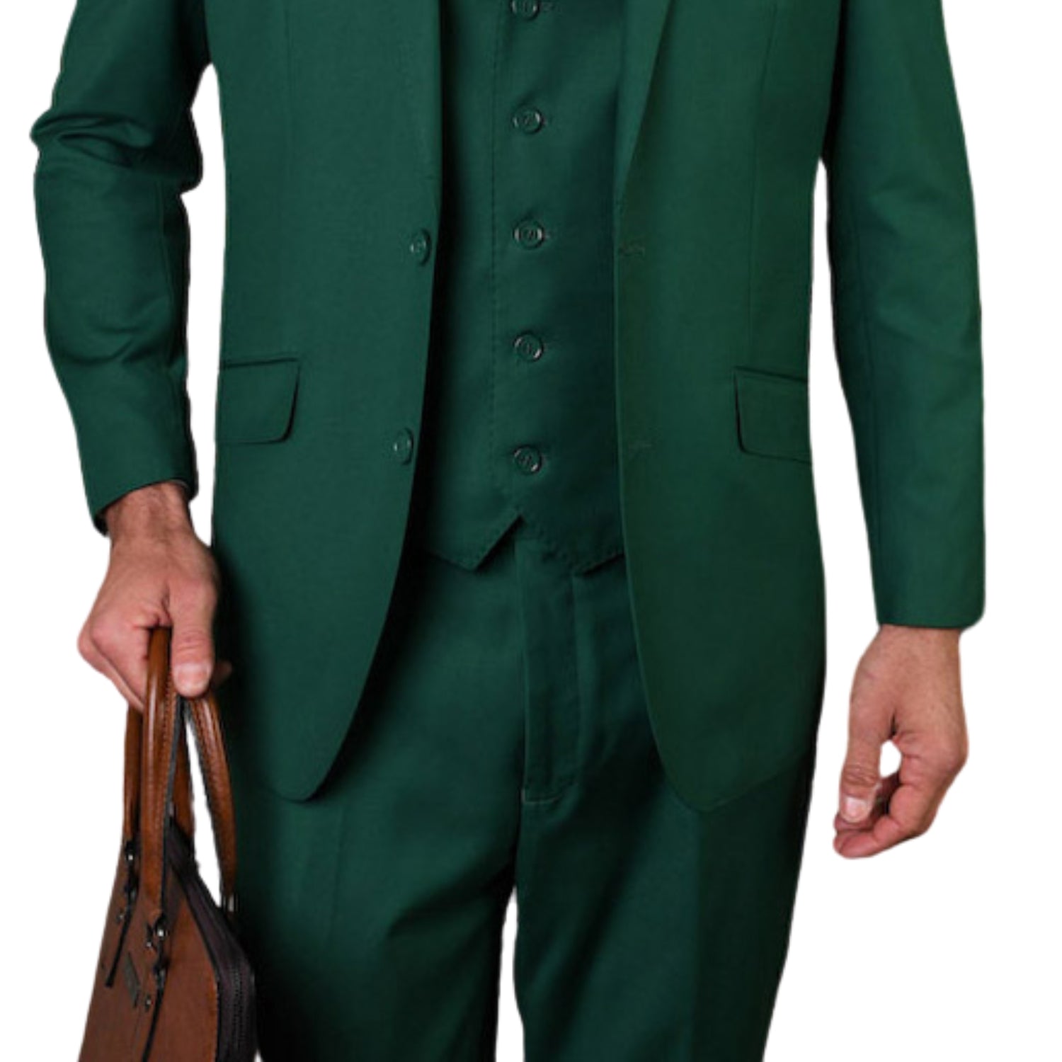 Pan Prestige Collection: 3PC Modern Fit Solid Color Suit With Super 150's Italian Wool In Forest Green