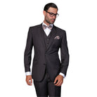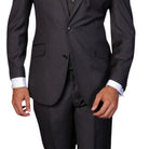 Pan Prestige Collection: 3PC Modern Fit Solid Color Suit With Super 150's Italian Wool In Heather Charcoal