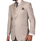 Clean lines. Smart fit. Effortless elegance. The Pan Prestige Collection delivers timeless style in this solid sand 3-piece suit, tailored to flatter. Made from smooth Super 150's fabric, it features a sleek blazer, coordinating vest, and flat front pants—perfect for formal events, weddings, or standout spring occasions.