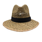 Step into timeless elegance with our Panama Rush Straw Safari Hat with a 3-pleat black band. Handwoven for perfection, it's the epitome of style and breathability, offering sun protection and a touch of classic beauty to elevate your outdoor look.