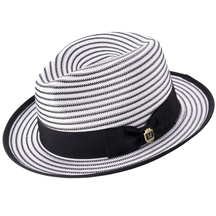 Pandora Collection: Montique Black Striped Fedora Hat with Ribbon Band