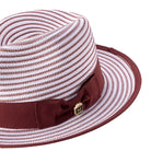 Pandora Collection: Montique Burgundy Striped Fedora Hat with Ribbon Band