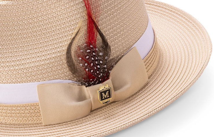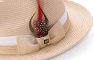 Pelican Collection: Montique Beige Fedora Hat with Two-Tone Grosgrain Ribbon Band and Feather Accent