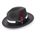 Pelican Collection: Montique Black Fedora Hat with Two-Tone Grosgrain Ribbon Band and Feather Accent
