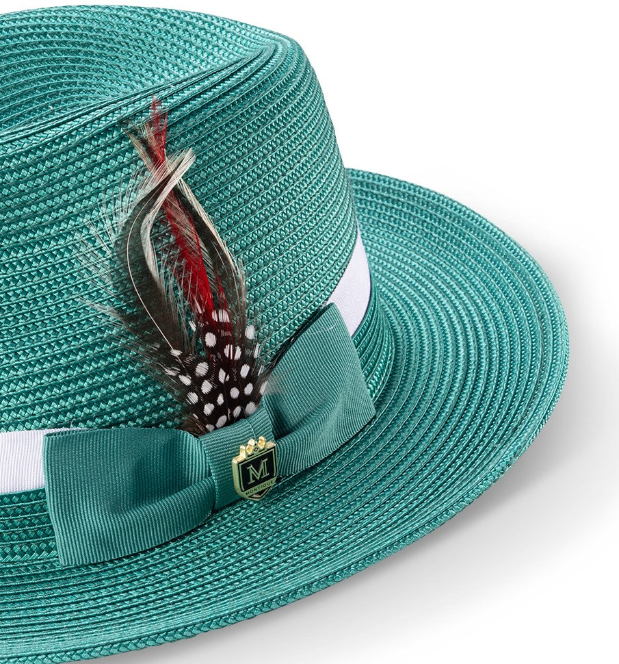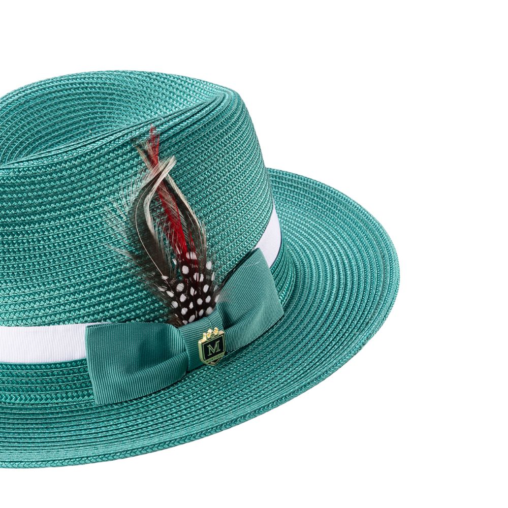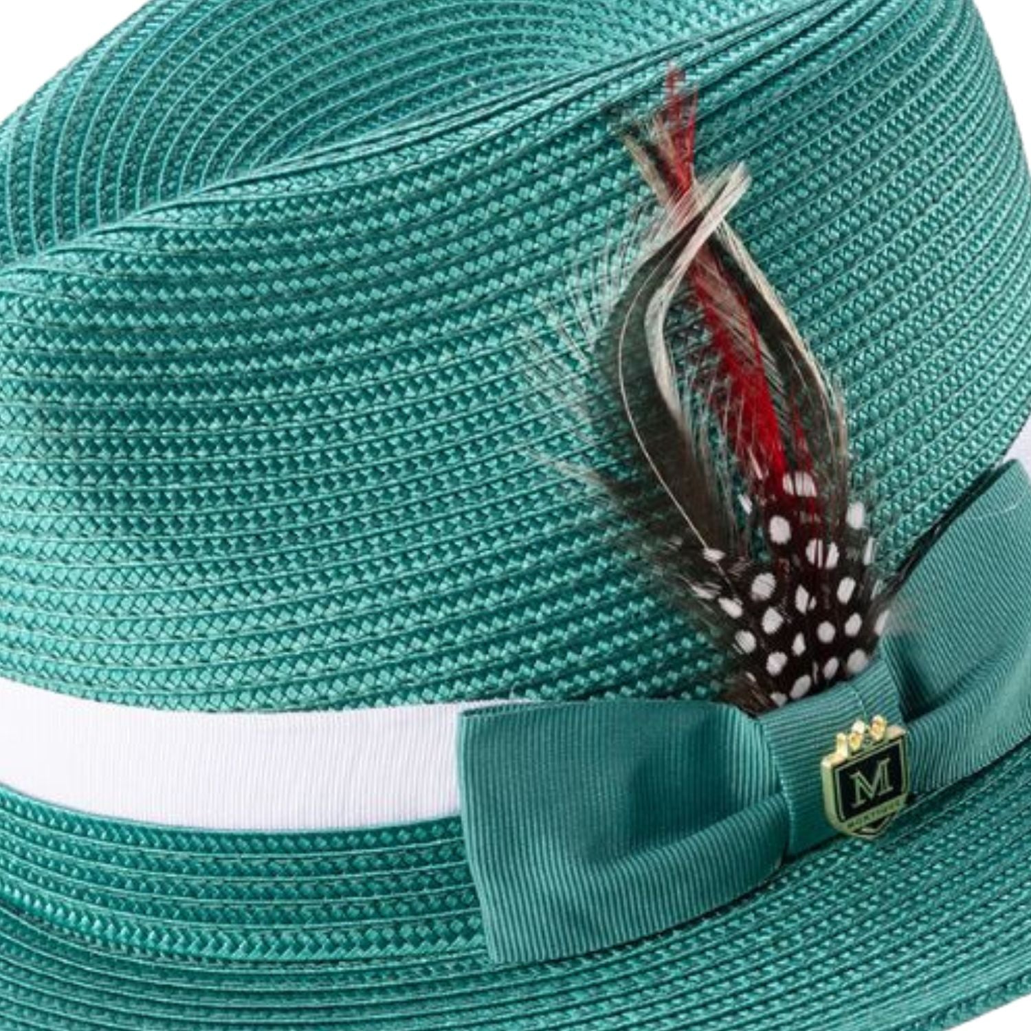 Pelican Collection: Montique Emerald Fedora Hat with Two-Tone Grosgrain Ribbon Band and Feather Accent