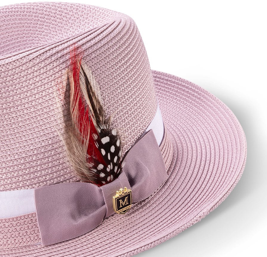 Pelican Collection: Montique Mauve Fedora Hat with Two-Tone Grosgrain Ribbon Band and Feather Accent