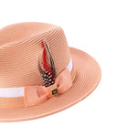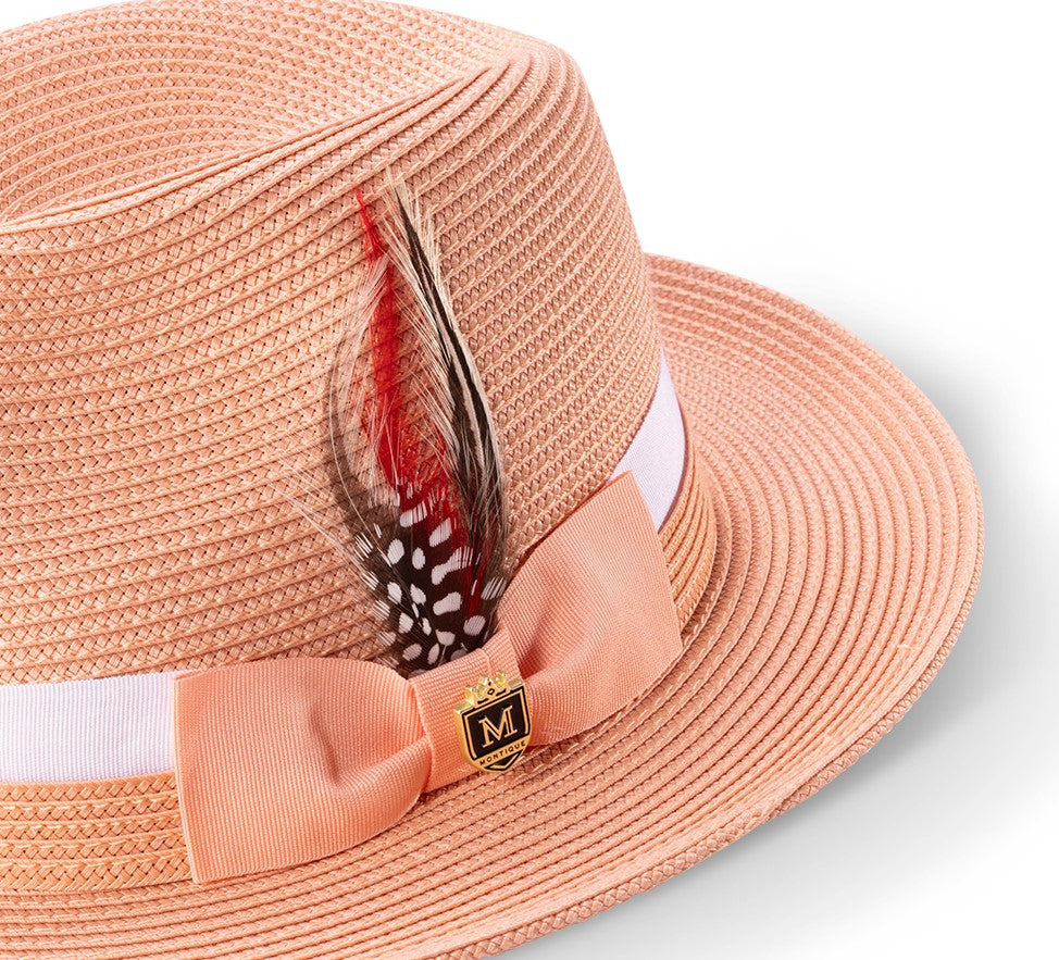Pelican Collection: Montique Peach Fedora Hat with Two-Tone Grosgrain Ribbon Band and Feather Accent