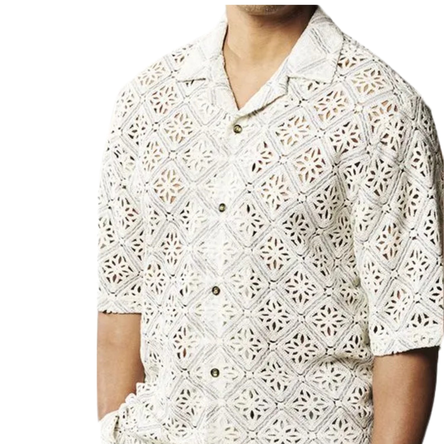 Perseus Collection: Stacy Adams Geometric Floral Lattice Crochet Woven Shirt in Grey