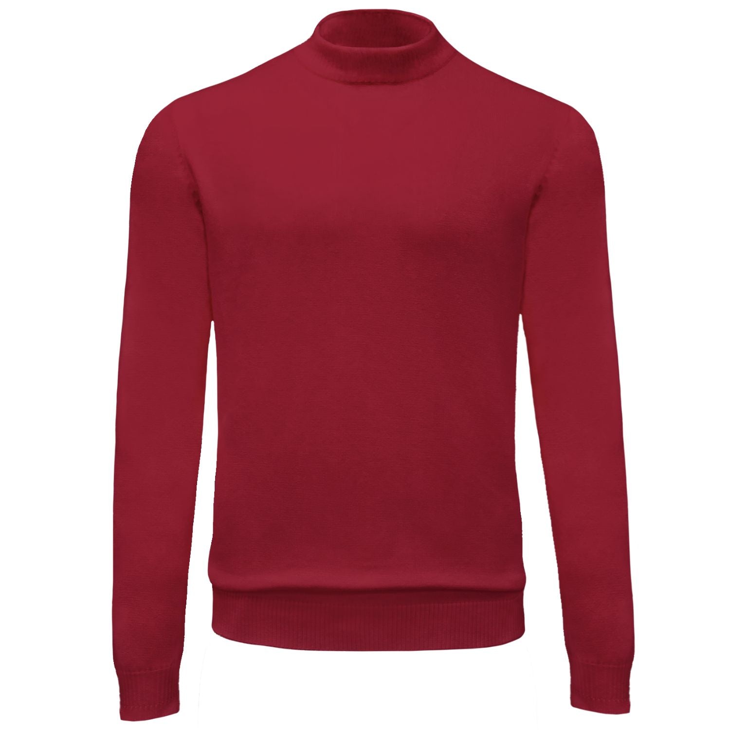Long-sleeve knit mock neck in red with a clean, minimal front. Soft stretch knit with ribbed mock collar, cuffs, and hem for a secure, comfortable fit. From Bagazio.