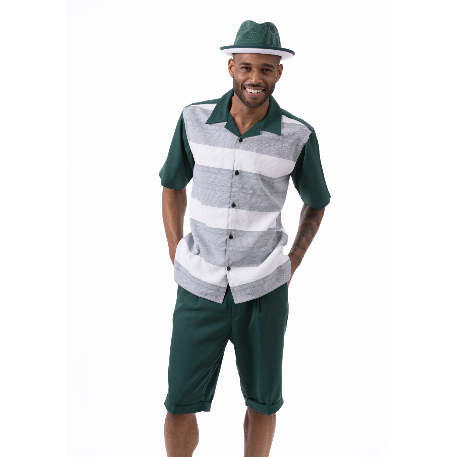 Photon Collection: Montique Emerald Striped Pattern Walking Suit 2 Piece SHORT PANTS Set
