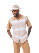 Photon Collection: Tan Horizontal Stripes Design 2 Piece SHORT PANTS Walking Suit