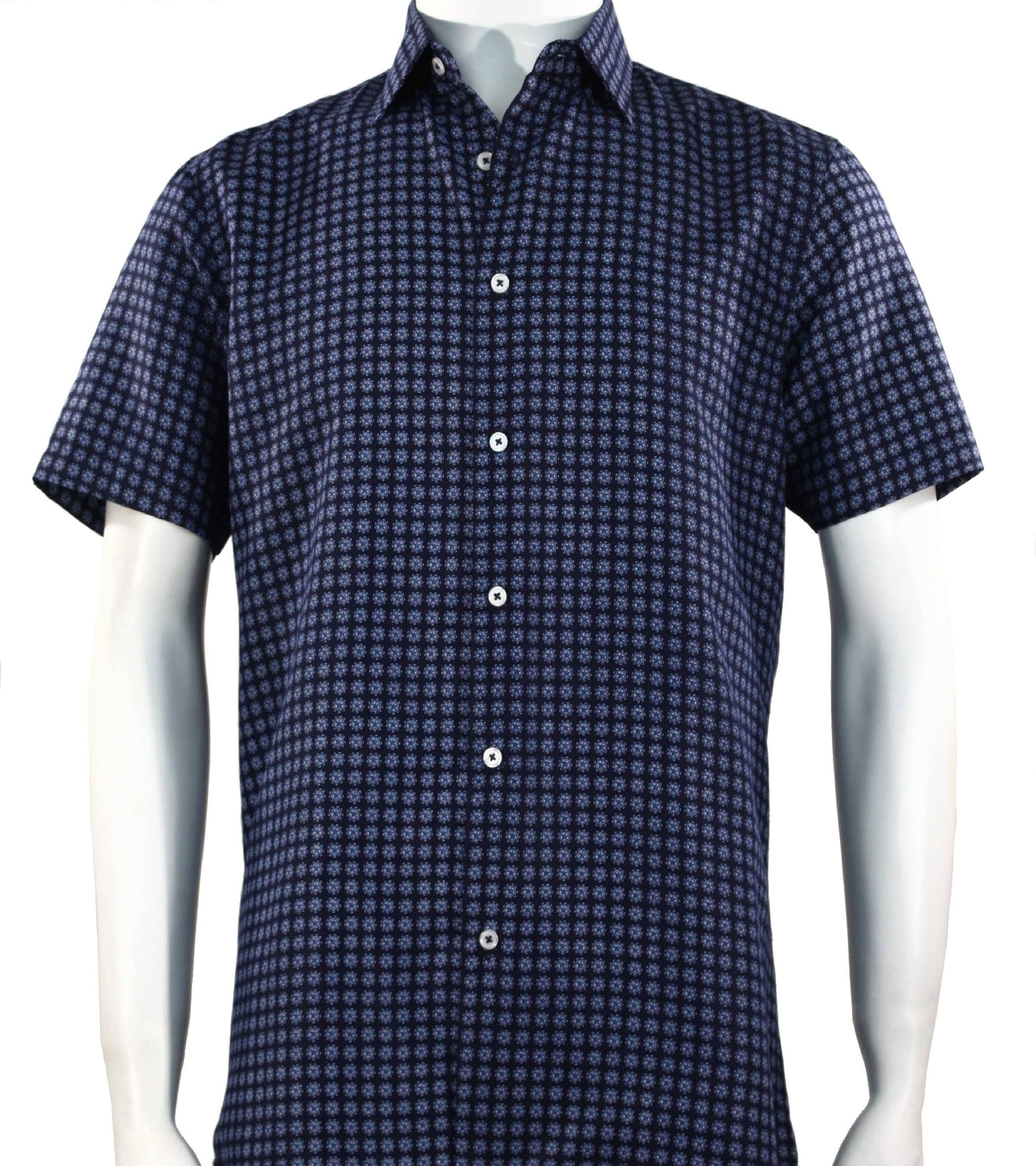 PixelGrid Navy Micro-Pixel Geometric Men's Short Sleeve Shirt - Modern Fit