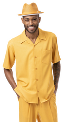 Plush Plains Collection: Montique Men's 2 Piece SHORTS SET Walking Suit Solid in Gold 7696