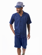 Plush Plains Collection: Montique Men's 2 Piece SHORTS SET Walking Suit Solid in Navy 7696