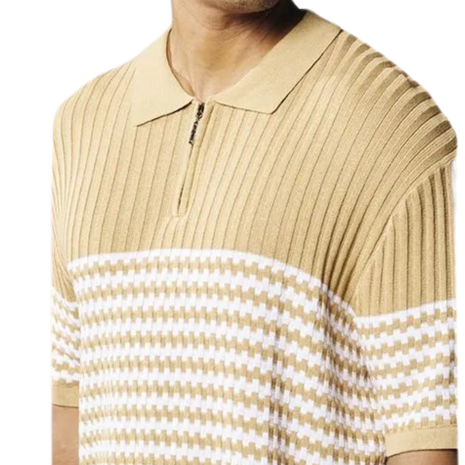 Polaris Australis Collection: Stacy Adams Engineered Knit Polo Shirt in Tan