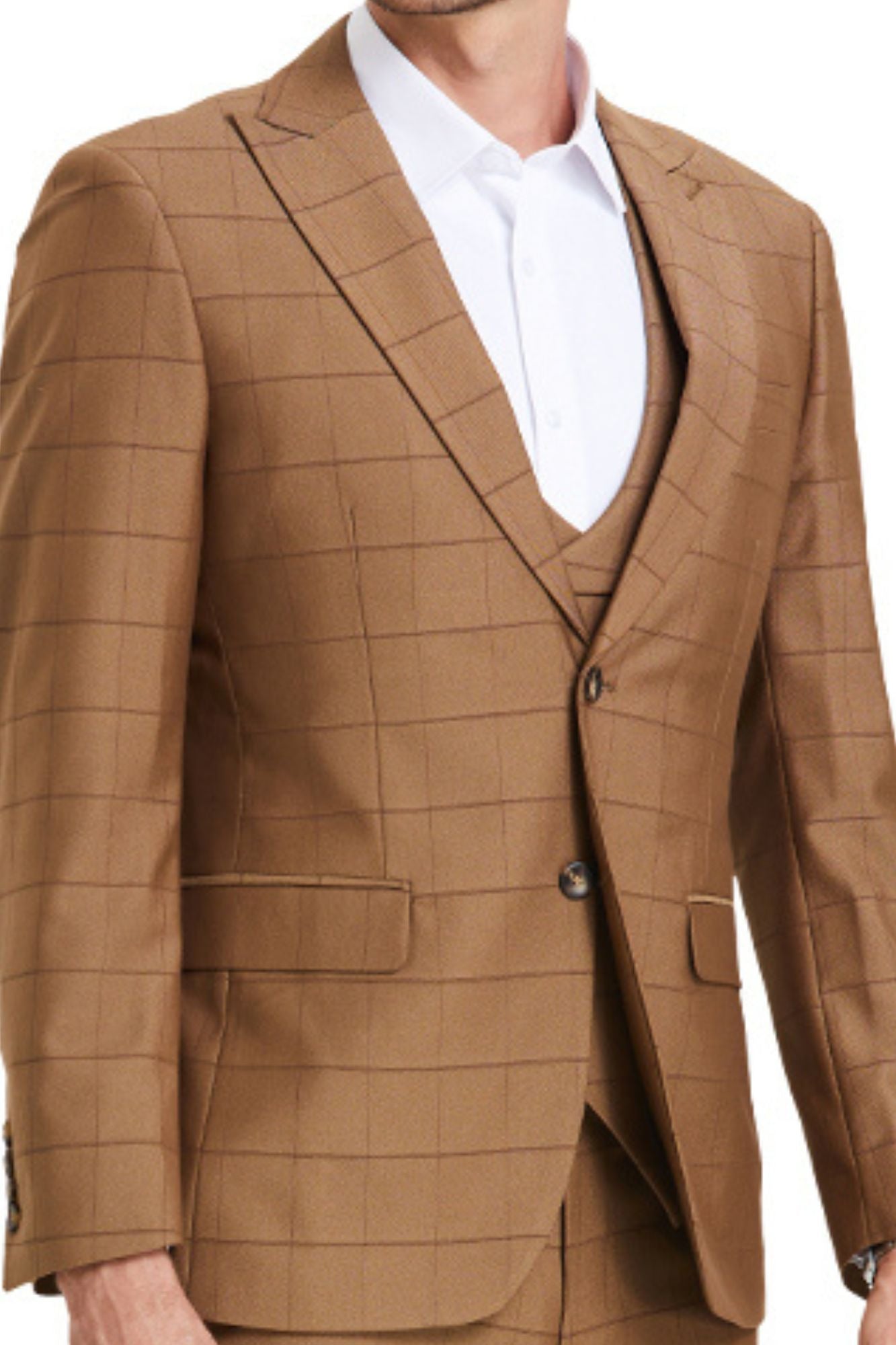 Introducing the Walnut Windowpane Masterpiece, a 3-Piece Suit that's a testament to timeless elegance with a modern twist. Perfect for those who appreciate detail, this ensemble is designed to impress at any event, from business meetings to special occasions.
