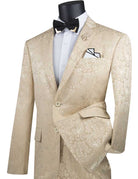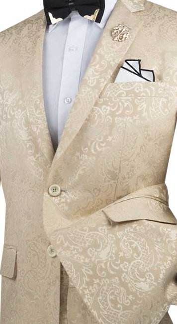 PoshPunto Collection: Beige 2 Piece Tone on Tone Paisley Print Single Breasted Slim Fit Suit - FINAL SALE Size 36R/30 Waist
