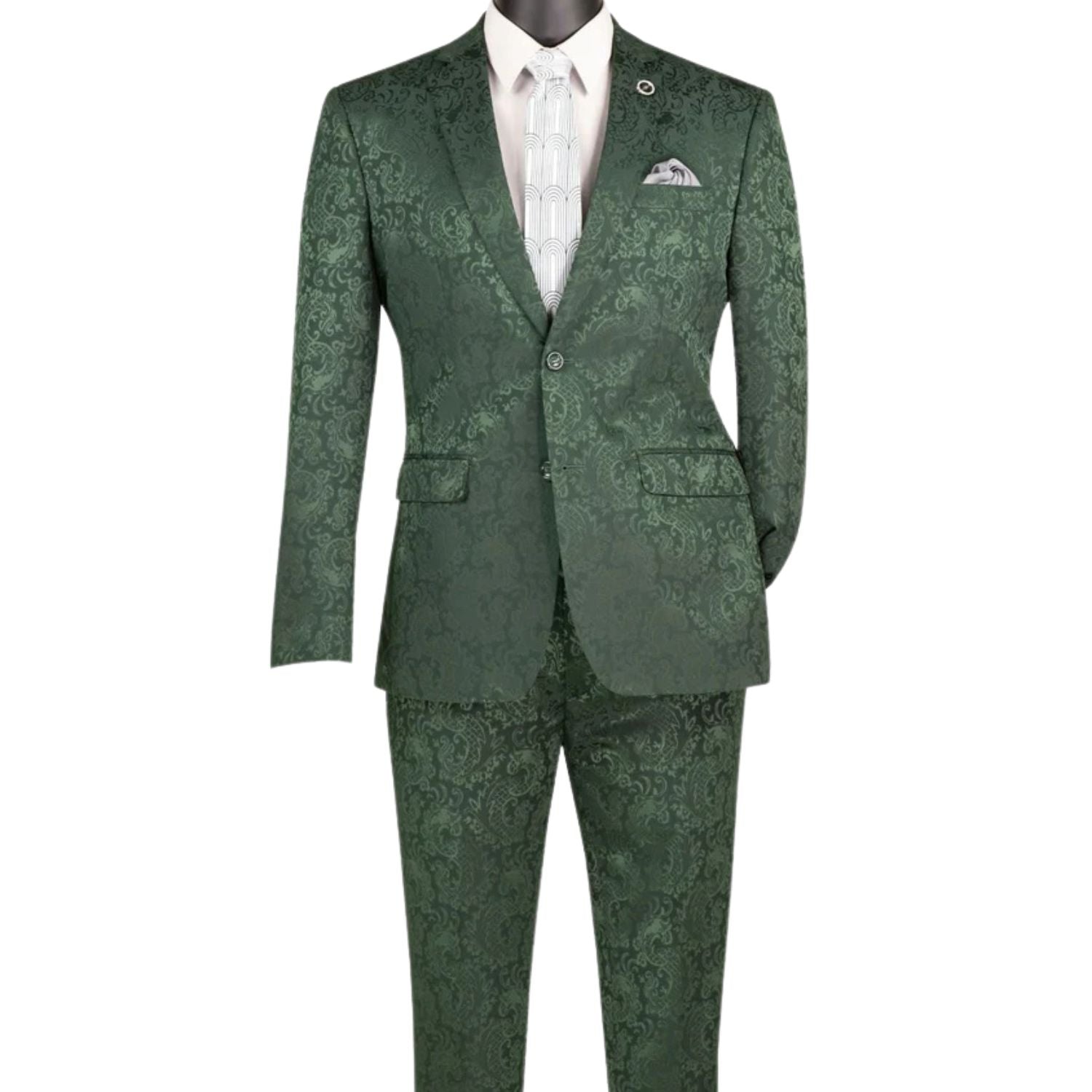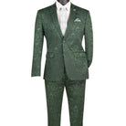 PoshPunto Collection: Hunter Green 2 Piece Tone on Tone Paisley Print Single Breasted Slim Fit Suit