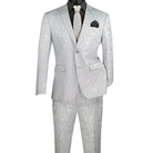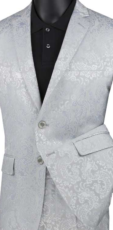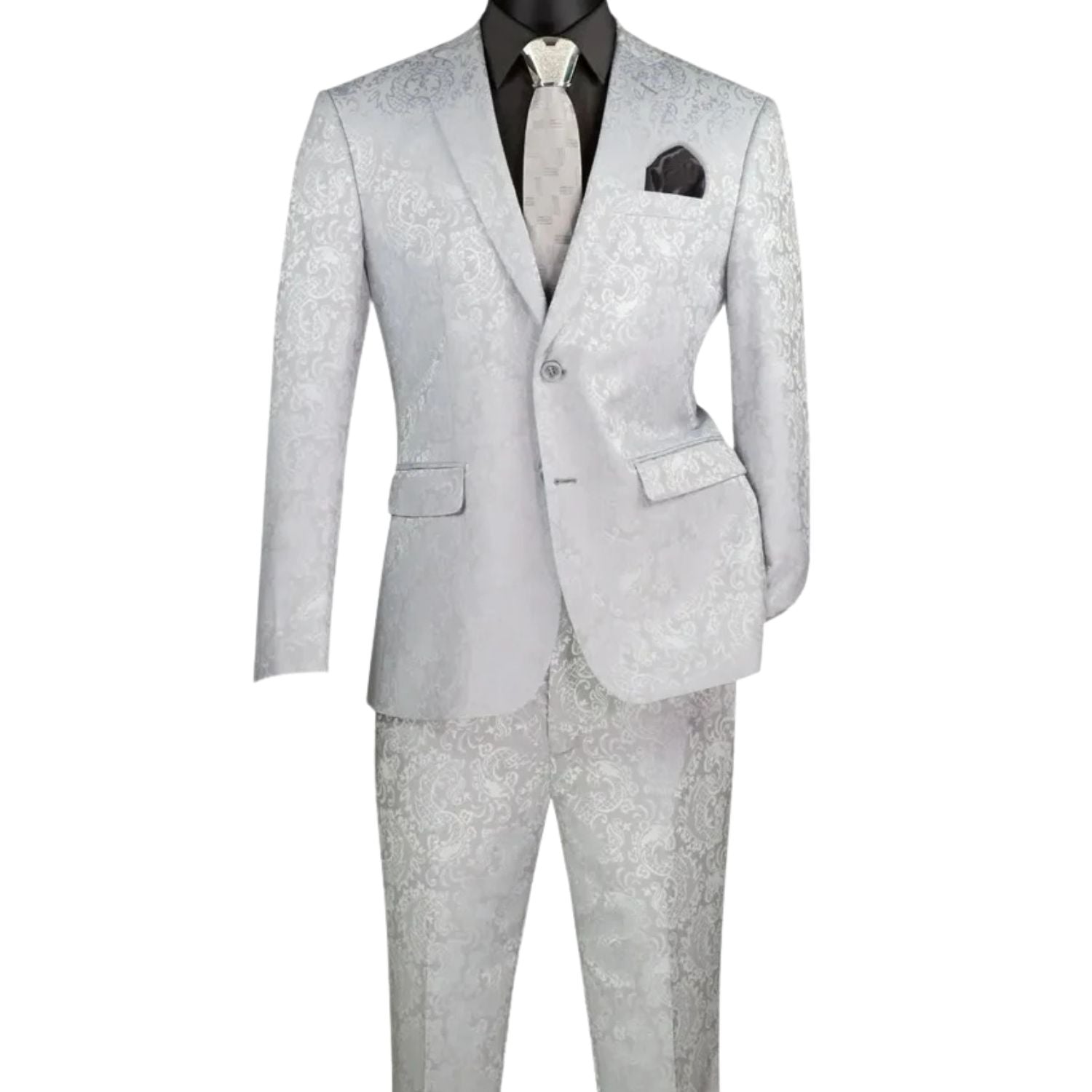 PoshPunto Collection: Silver 2 Piece Tone on Tone Paisley Print Single Breasted Slim Fit Suit