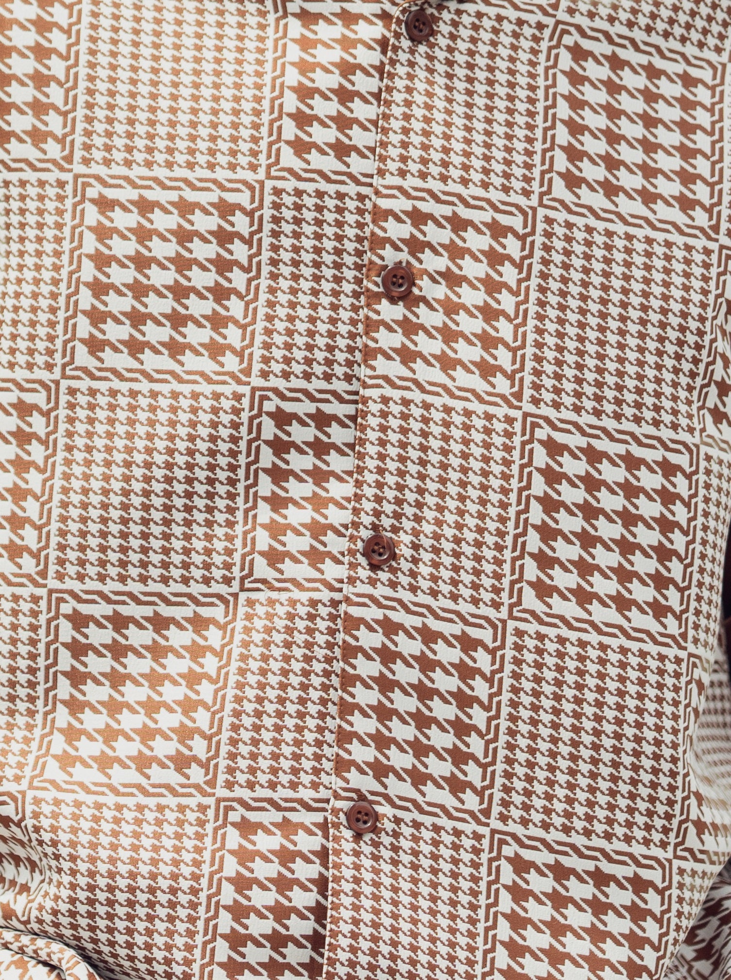 Poule Collection: Cognac Houndstooth 2 Piece Long Sleeve Walking Suit Set