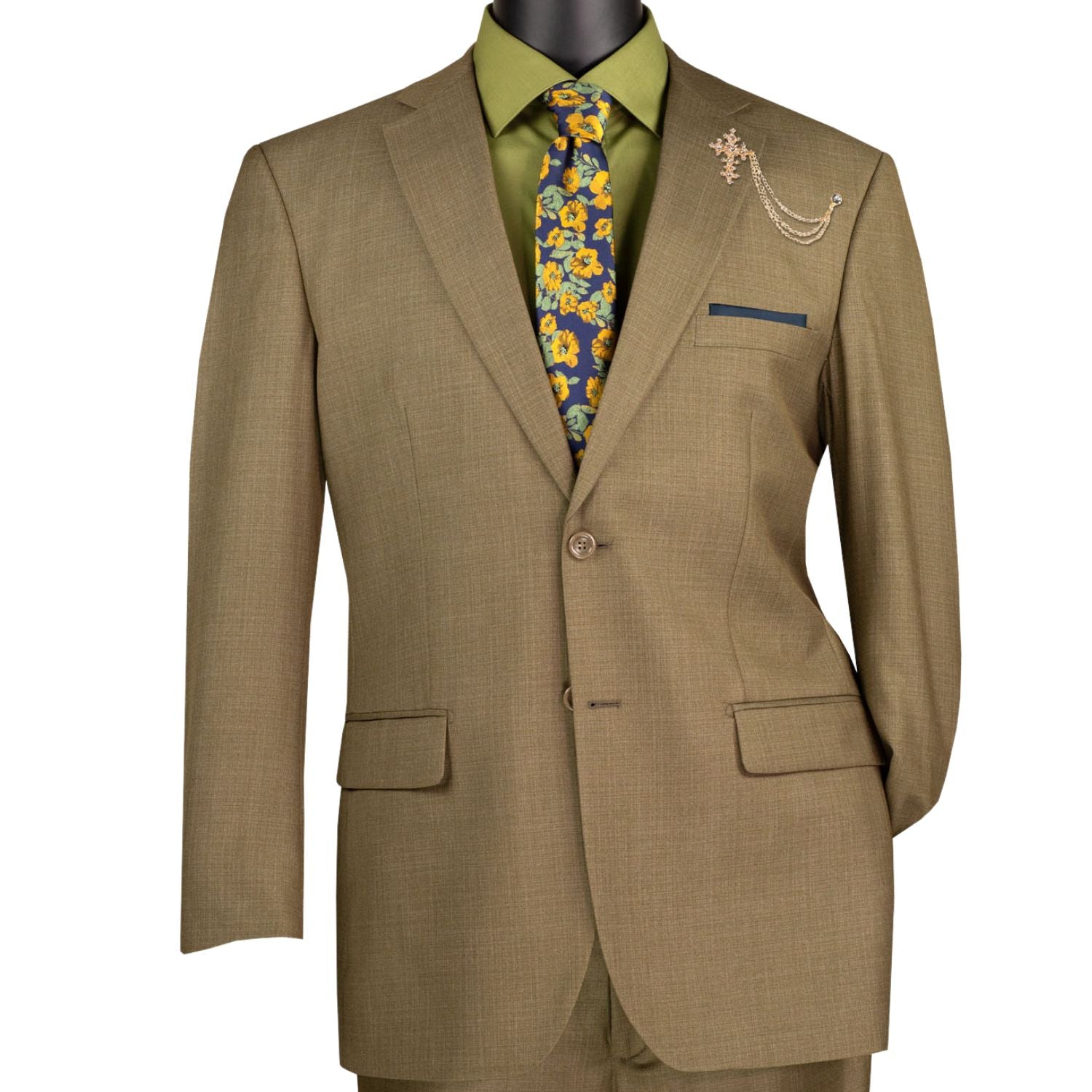 Prestigio Collection: Beige 2 Piece Solid Color Single Breasted Regular Fit Suit