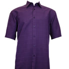 Purple Textured Plaid Pattern Short Sleeve Shirt – Regular Fit
