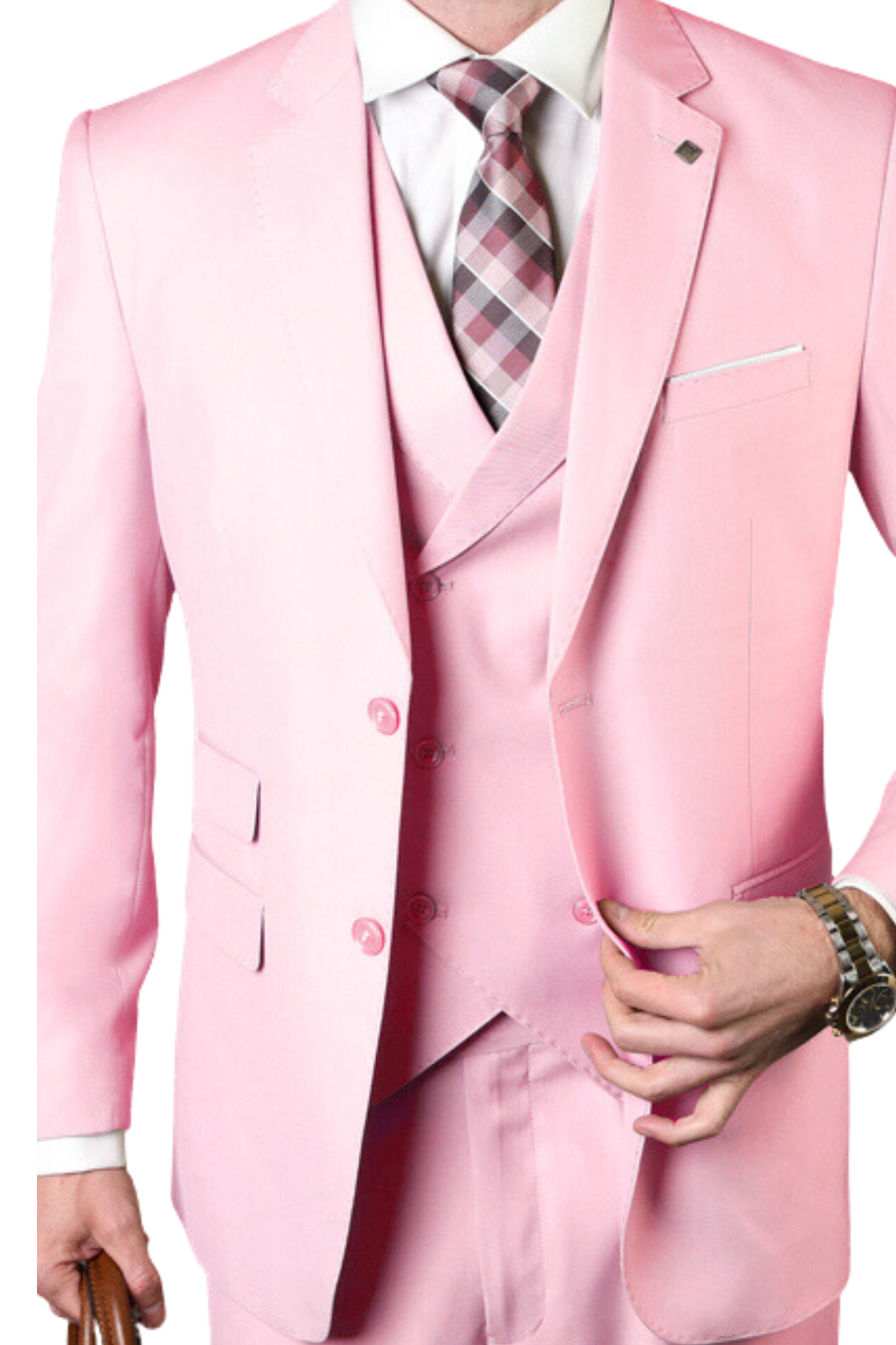 Qualitique Collection: Pink 3PC Modern Fit Suit with Double Breasted Vest