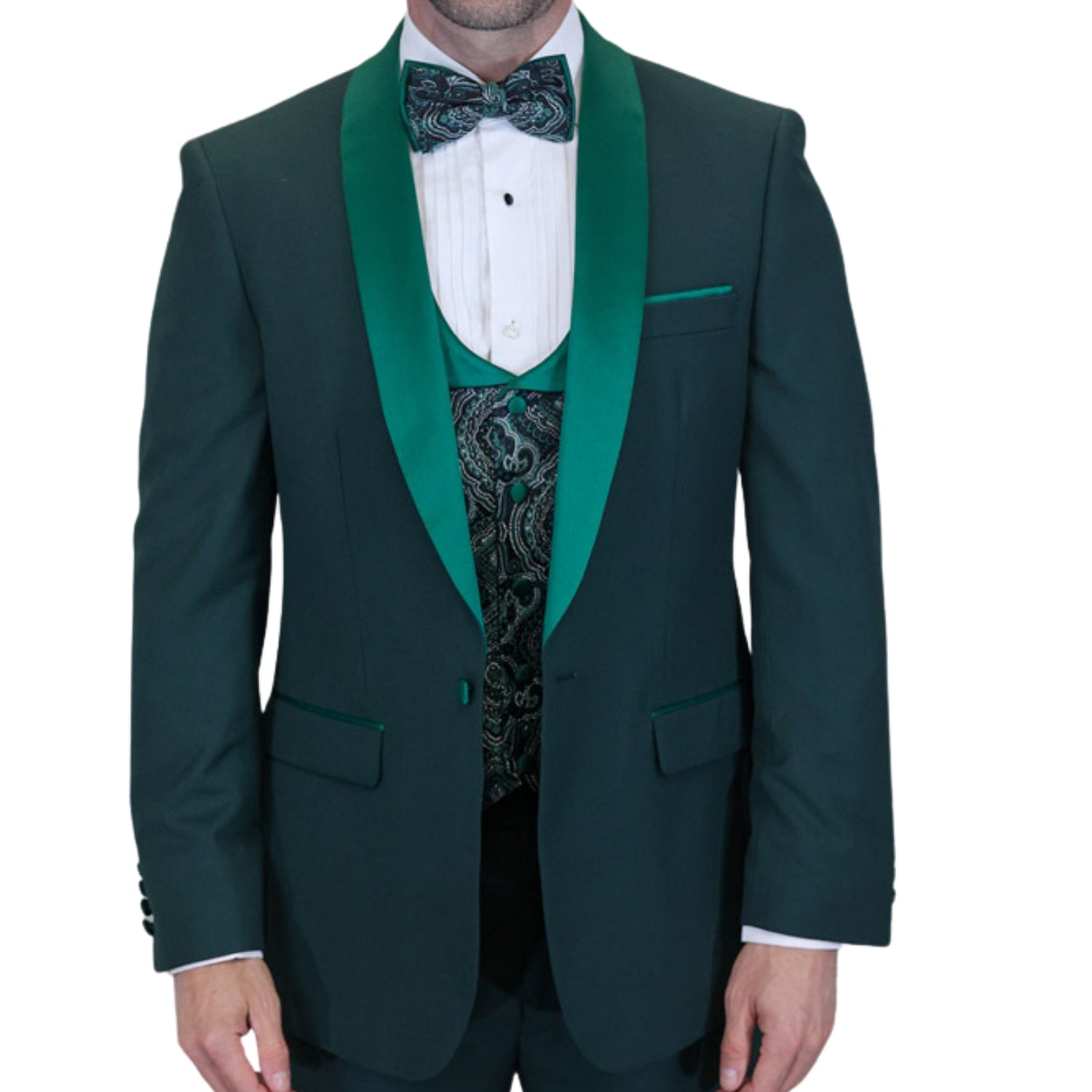 Quantum Collection: Hunter Green Tailored Fit Tuxedo, 3-Piece with Flat Front Pants and Bow Tie