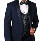 Quantum Collection: Indigo Tailored Fit Tuxedo, 3-Piece with Flat Front Pants and Bow Tie
