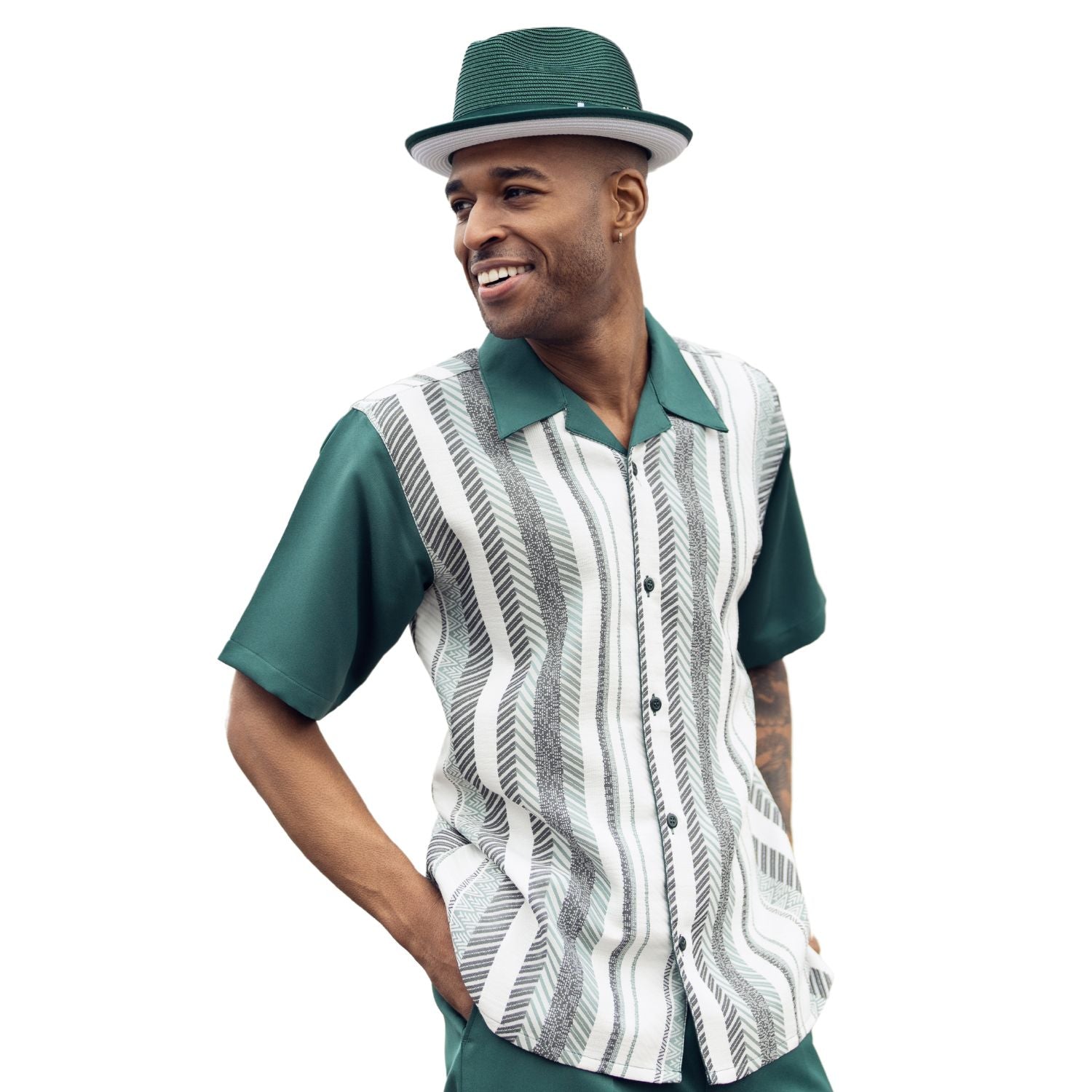 Quaoar Collection: Montique's Men's Emerald Striped Walking Suit