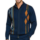 Rasalas Collection: Navy Zip Sweater Jacket with Suede Diamond Argyle Pattern