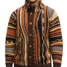 This button-up sweater features a mix of color tones in a bold, textured knit that instantly stands out. Crafted in a warm wool blend, it’s finished with ribbed cuffs, hem, and collar for comfort and structure. The button front makes it easy to layer or wear solo.