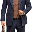RegalRush Collection: Midnight Blue Plaid 3-Piece Suit with Double-Breasted Vest - Modern Fit