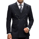 Command attention with the Regent Noir Collection, a striking 2-piece pinstripe double-breasted suit designed for power and sophistication. Crafted from Super 200’s Italian wool and cashmere, this modern-fit suit delivers a seamless balance of structure and refinement. The sharp double-breasted silhouette with peak lapels accentuates its timeless elegance, while the subtle pinstripes add depth and prestige. Perfect for formal affairs, executive settings, or any occasion where making an impression is key.
