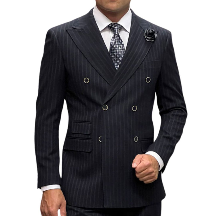 Regent Noir Collection: Black 2-Piece Pinstripe Double-Breasted Suit