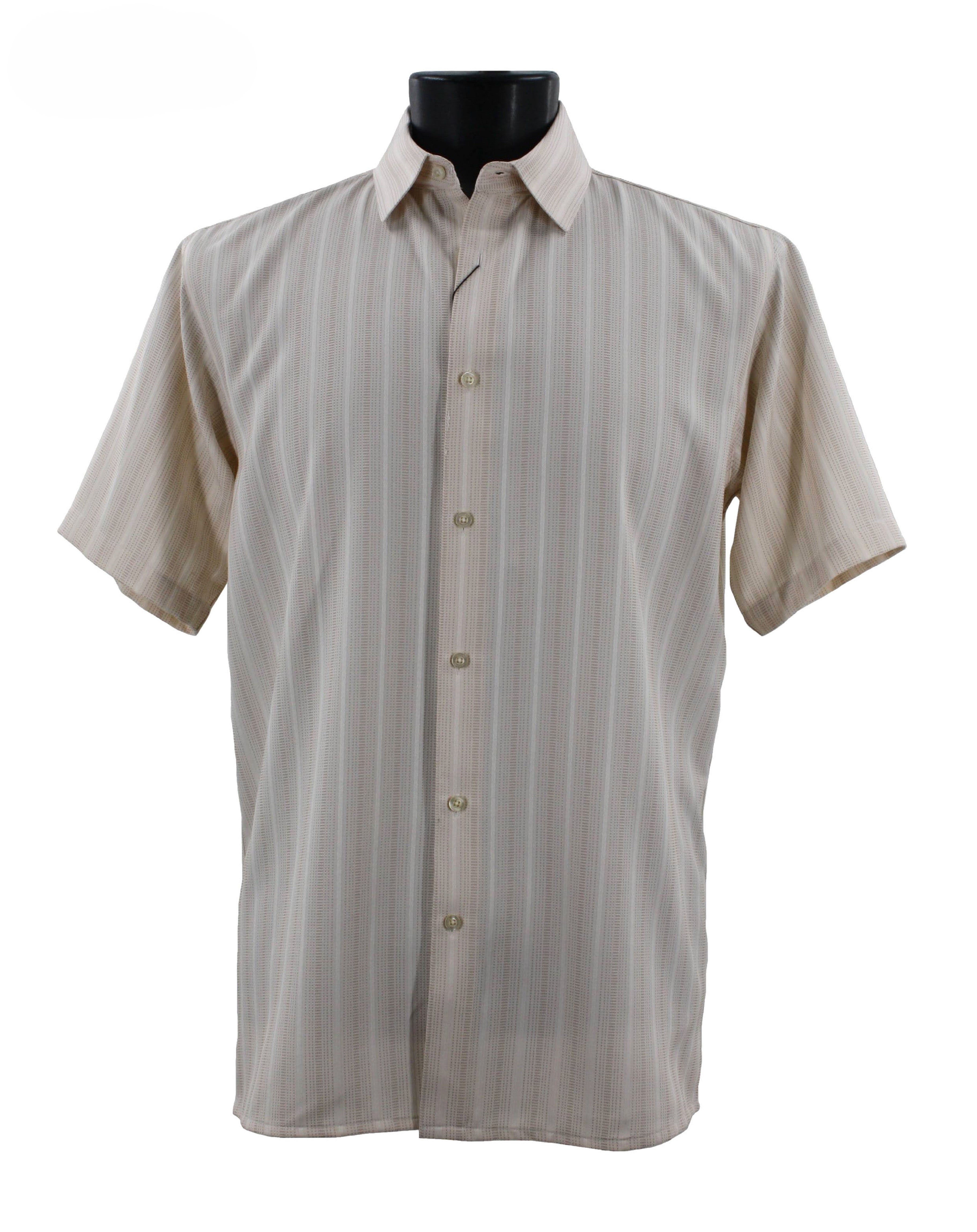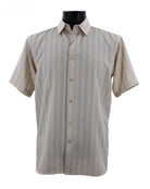 Regent's Line Beige Vertical Stripe Microfiber Short Sleeve Shirt – Full Cut
