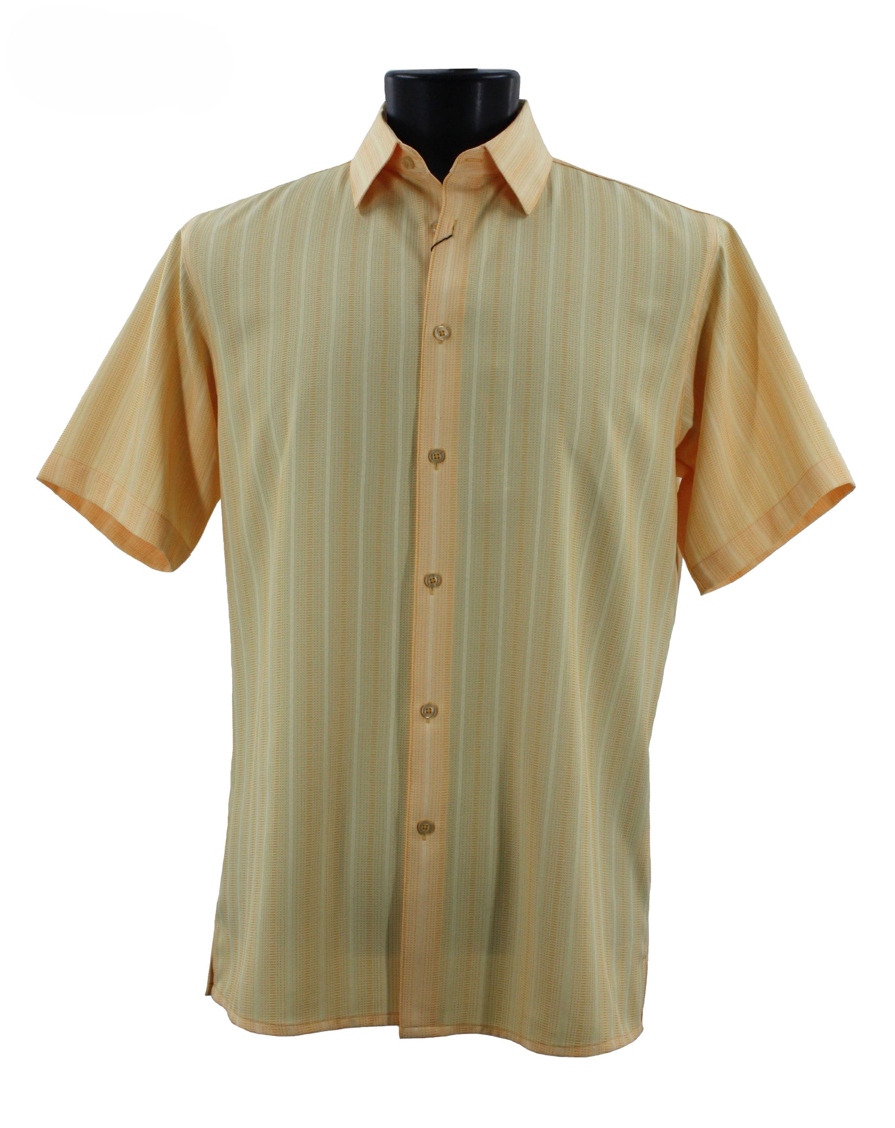 Regent's Line Canary Vertical Stripe Microfiber Short Sleeve Shirt – Full Cut