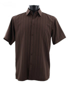 Regent's Line Chocolate Brown Vertical Stripe Microfiber Short Sleeve Shirt – Full Cut